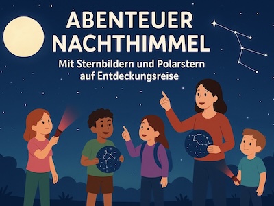 In diesem spannenden Mitmach-Vortrag lernen Kinder, sich am Nachthimmel zu orientieren. Sie entdecken bekannte Sternbilder wie den Großen Wagen, finden den Polarstern und erfahren, wie ihn schon Seeleute zur Orientierung nutzten und warum er auch heute noch wichtig ist. Mit einer drehbaren Sternkarte und Rotlicht-Taschenlampen machen wir anschließend eine „Sternwanderung“ unter freiem Himmel und entdecken gemeinsam die aktuellen Sternbilder. Ein interaktives Abenteuer für alle kleinen und großen Himmelsforscher.